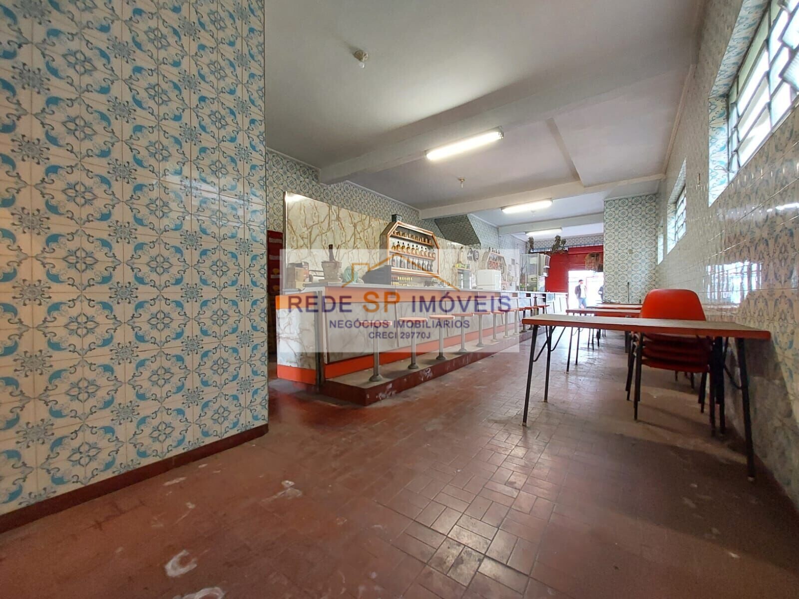 Atualmente possui estrutura interna de lanchonete com: balcões, mesas e cadeiras, fogão, coifa.